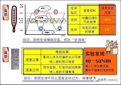 3.定频空调运行时仅“高转速”一种状态;变频空调根据实际情况,转速可自动调节 变频空调和定频空调的区别:舒适性 变频空调为何舒适: 1.定频空调温度波动大,波动范围达到4℃;变频空调可精确控温,波动范围仅1℃