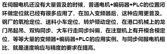 ▼ 但是,用户经常会有这样那样的问题出现: ✦变频电机为什么要装编码器? ✦不装编码器也行吗? ✦变频电机装了编码器,就是可以作为异步伺服控制 了?就可以做定位控制了吗? ✦有些变频电机控制不仅装了一个编码器,还有双编码器闭环,是怎么回事? ✦有人说,“变频电机做不好定位的,也做不好同步,要做同步控制就要换同步伺服电机”?