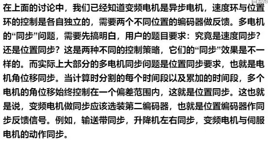 五、多电机同步控制问题, 是位置同步而不是速度同步 ——————————————————