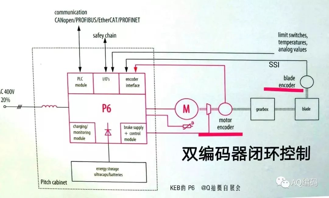下图为工博会上KEB驱动器P6展示的双编码器闭环控制原理图