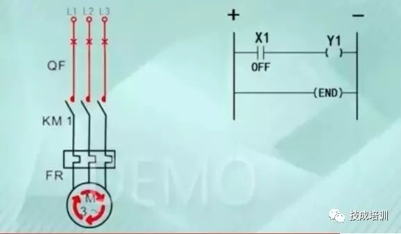 如上图,我们松开按钮时,也就是说X1处于OFF的时候母线之间的回路开路,Y1线圈就断电了,主触点复位断开,电动机就会失电停止工作。