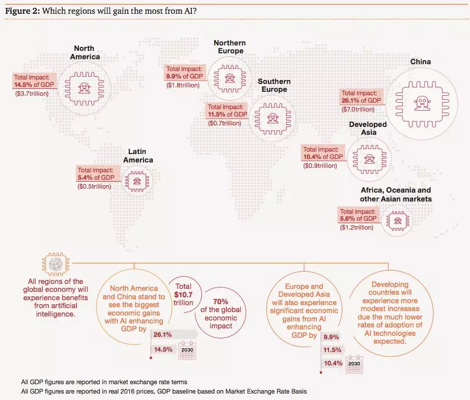 根据普华永道的数据,中国、北美地区和北欧地区正将是这场AI浪潮的巨大受益者。