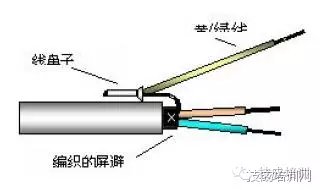 用线鼻子把导线与屏蔽压在一起;