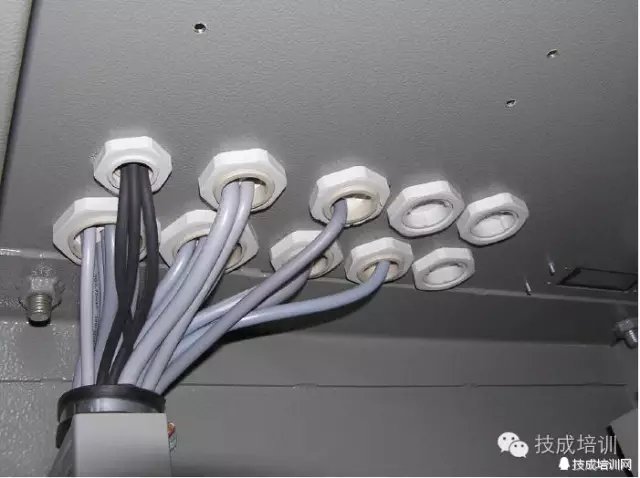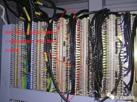 接线不规范,必须把进入线槽的大电缆外层都剥开,把所有导线压进线槽