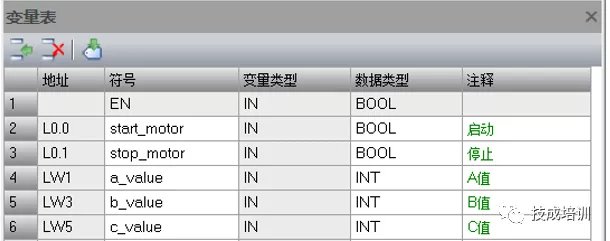 对于电机的运行标志位,在低压下限设定值时启动,高于上限设定值时停止,在两个限制值之间时需要进行自保持,所以需要用到他的触点进行自锁,这也是一个可读可写的变量,同样建为IN_OUT的变量类型。