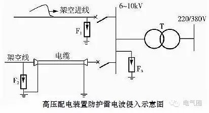 6kV~10kV配电装置对雷电波侵入的防护接线示意图如下图所示: