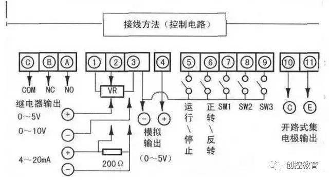 2、由于控制电路的频率输入信号是微小电流,所以在接点输入的场合,为了防止接触不良,微小信号接点应使用两个并联的节点或使用双生接点。