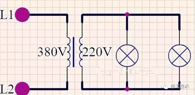 变压器电路 可以加一个380V变220V的隔离降压变压器。 将电压变为220V与灯泡标称电压值匹配。