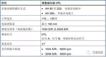 但是对于使用HTL或者TTL类型的西门子伺服电机编码器来说,分辨率只能提高4倍。如 1024 SR或者2048 SR类型编码器,可提供的最高分辨率为 4096 或者 8192,转换后编码器可以描述的最小单位为 5.27角分或者 2.63角分,但是其物理精度可以提供达到±1角分, 分辨率提供的精度小于编码器的实际物理精度。