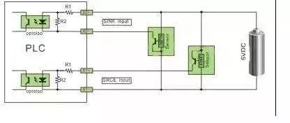 2、词语的概述SINK漏型为电流从输入端流出,那么输入端与电源负极相连即可,说明接口内部的光电耦合器为单端共点为电源正极,可接NPN型传感器。SOURCE源型为电流从输入端流进,那么输入端与电源正极相连即可,说明接口内部的光电耦合器为单端共点为电源负极,可接PNP型传感器。接近开关与光电开关三、四线输出分 NPN 与 PNP 输出,对于无检测信号时 NPN 的接近开关与光电开关输出为高电平(对内部有上拉电阻而言),当有检测信号,内部NPN 管导通,开关输出为低电平。对于无检测信号时 PNP 的接近开关与光电开关输出为低电平(对内部有下拉电阻而言),当有检测信号,内部 PNP 管导通,开关输出为高电平。