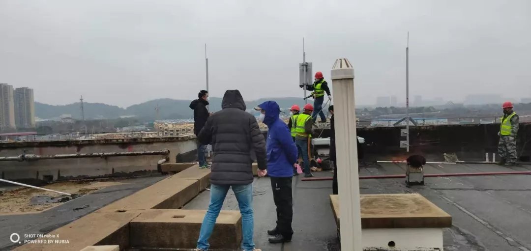 为了达到针对医院的精准覆盖和更好的通讯效果,中国联通武汉分公司在疗养院的楼顶上新增了“火神山基站”站点,实现了3G/4G/5G网络覆盖。