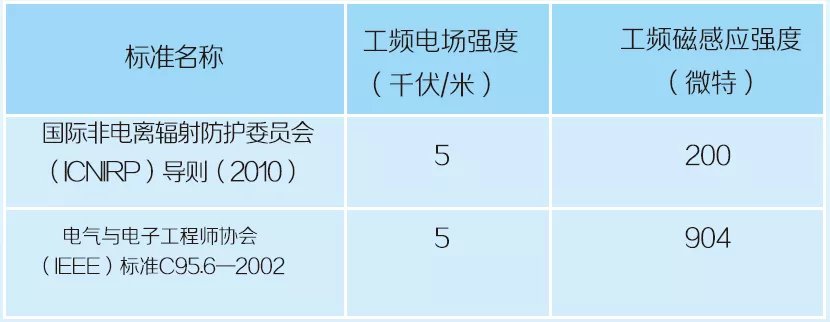 世界卫生组织推荐的工频电场、工频磁场的公众曝露限值如下: