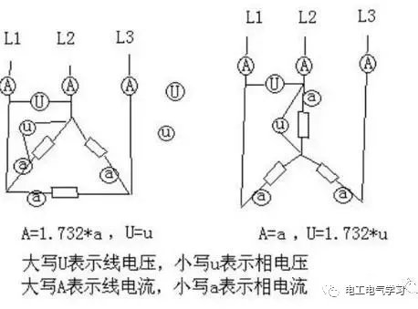 说到三相交流电可能有些人陌生,因为三相交流多都是工业人用得多。但说到单相交流电应该基本都懂,因为我们日常生活中用的电就是单相交流电,一条火线一条零线组成的电网就是单相交流电。正是只有一条火线,因此才称为单相交流电。 既然一条火线叫单相交流电,那三相交流电肯定是有三条火线,这样理解也是对的,因为它确实有三条火线,这也是比较好记及理解。 但作为一个合格的电工只是明白这样远远不够,那什么是三相交流电呢? 一、三相交流电基本概述 三相交流电是由三个频率相同、电势振幅相等、相位差互差120°角的交流电路组成的电力系统。目前,我国生产、配送的都是三相交流电。 三相交流电比单相交流电有很多优越性,在用电方面,三相电动机比单相电动机结构简单,价格便宜,性能好;在送电方面,采用三相制,在相同条件下比单相输电节约输电线用铜量。实际上单相电源就是取三相电源的一相,因此,三相交流电得到了广泛的应用。 使一个线圈在磁场里转动,电路里只产生一个交变电动势,这时发出的交流电叫做单相交流电。如果在磁场里有三个互成角度的线圈同时转动,电路里就发生三个交变电动势,这时发出的交流电叫做三相交流电。 交流电机中,在铁芯上固定着三个相同的线圈AX、BY、CZ,始端是A、B、C,末端是X、Y、Z。三个线圈的平面互成120度角。匀速地转动铁芯,三个线圈就在磁场里匀速转动。三个线圈是相同的,它们发出的三个电动势,最大值和频率都相同。 这三个电动势的最大值和频率虽然相同,但是它们的相位并不相同。由于三个线圈平面互成120度角,所以三个电动势的相位互差120度。 三根火线中任意相线与零线之间的电压叫相电压Ua,Ub,Uc,我国的低压供电系统中,三根相线各自与中性线之间的电压为220伏。 三根相线彼此之间的电压,称为线电压。在对称的三相系统中,线电压的大小是相电压的1.73倍。在我国的低压供电系统中,线电压为380伏。 四、线电压和相电压的区别 电力系统中常用的A,B,C三相。 相电压就是单项电压,即单项对地电压,民用一般是220V。 线电压就是常说的相间电压,即每2相之间的电压,动力电一般是380V。 在y型接法的变压器中线电压等于相电压的根号3倍,相电流等于线电流。 在三角接法中线电压等于相电压,相电流等于线电流的根号3倍,功率P=根号3*UI。 五、相电流和线电流的区别 三相四线制配电,相电流和线电流的区别,主要看负载的连接方法,如果是星型接法,相电流和线电流相同,线电压是相电压的开方3倍。如果负载是三角形接法,那么,线电流是相电流的开方3倍,相电压和线电压相同。 在三相交流电中,线电流与相电流的关系要根据负载接法来确定。星型接法中,线电流=相电流;三角形接法中,线电流=根号3倍相电流。 区别: (1)相电压:三相线中任一相线与零线的电压。线电压:三相线中的线与线的电压。关系:U相=U线/1.732。 (2)相电流:相线与零线负载的电流。线电流:三相负载的线与线间的电流。关系:I相=P/U相/功率因数,I线=P/1.732/U相/功率因数。 三相发电机星形接法中,三个绕组的末端被连在一起形成公共端——中性线——零线。和三个绕组起端相连接的输电线形成相线,也叫火线。(火线)与中性线间的电压就叫相电压U1。三相电源中流过每相负载的电流为相电流。 (3)线电压 是多相供电系统两线之间,以三相为例,中A、B、C三相引出线相互之间的电压,又称相间电压。星型连接的线电压的大小为相电压的√3 倍。三角形电源的相电压等于线电压。