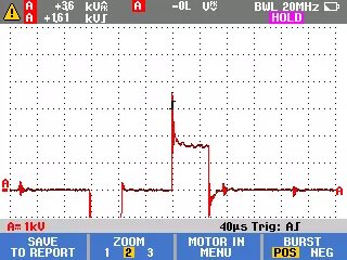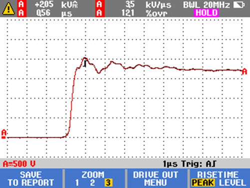 电机输入端电压上升沿波形,存在过冲电压!☟