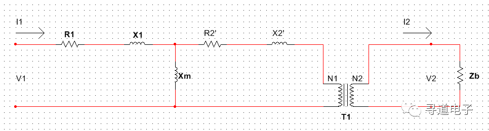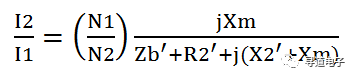 其中: 互感器一次侧与二次侧匝数比为 N1:N2 Xm为磁化电抗 R2'和X2'为二次侧阻抗归算到一次侧的阻抗 R1和X1为一次侧阻抗 假设电流互感器二次侧短路(Zb=0),那么二次侧与一次侧电流关系如公式1所示: