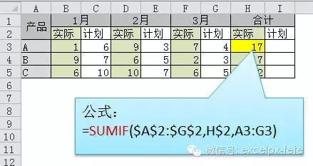 =SUMIF($A$2  G$2,H$2,A3:G3) 或 =SUMPRODUCT((MOD(COLUMN(B3:G3),2)=0)*B3:G3) 说明:如果标题行没有规则用第2个公式