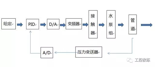 用变频器作为常用的执行机构,通过调节变频器的输出频率,来控制被控对象的物理量,例如压力和流量,可以实现多种物理量的闭环控制,最常见的是泵站供水压力的恒压闭环控制。 供水系统的加压泵站一般采用多泵并联的供水方式,过去用人工来控制投入运行的水泵的台数,将出口压力控制在允许的范围内。这种控制方式的水压不稳定,很难满足用水的要求,轻载时过高的水压还会造成能量的浪费。 图1:泵站监控 用变频器实现的闭环控制可以保证泵站的出口压力基本恒定。为了节省投资,一般只配备一台变频器,某一台电动机用变频器驱动,其他电动机仍然用工频电源驱动。多泵并联恒压供水系统中,只要其中最大的一台泵是变频调速泵,其余各泵是工频恒速泵.就可以实现多泵并联恒压变流量供水。因为变频器的价格基本上与其功率成正比,最经济的方案是各并联水泵电动机的输出功率相同。 1、使用变频器内置的PI控制器 现代的变频器内部一般都有一个PI控制器或PID控制器。对于恒压供水这一类闭环控制系统,可以将反馈信号(例如压力信号)接到变频器的反馈信号愉人端,用变频器内部的控制器实现闭环控制,以减少压力偏差,保持水压恒定。 PLC的主要是依据管道的出口压力,控制工频电源供电的水泵台数,通过开关量输出信号,给变频器提供起动、停止命令,对泵站总的供水量进行粗调。 下图所示的系统中,压力变送器将泵站出口管道的水压转换为标准量程的电压或电流,这些反馈量直接送给变频器的模拟量输入端,这种方案的控制与和变频器是一体化的,具有硬件成本低、使用方便、工程编程量少的优点,应优先采用,可以安装在水泵出水口管道上的压力传感器,将0-1MPa的压力转换为4一 20mA的直流电流,用于水压的闭环控制。 图2:变频调速供水系统控制图 变频器时刻跟踪管网压力与压力给定位之间的偏差变化情况,经变频器内部的PID运算,调节变频器的输出频率,改变变频器驱动的水泵的转速。变频器的输出频率越高,泵站的出口压力就越高。选择最佳的输出频率,既能保证供水的压力,又能防止压力过高,可以节约大量的能量。 为了实现工频泵的自动投人和切除,需要给PLC提供管道压力信号或变频器的频率信号。可以用电接点压力表给PLC提供压力过高和压力过低的触点信号,电接点压力表的价格便宜,工作可靠。 现代的变频器都有可编程的输出触点,例如可以对触点编程,使它在变频器的频率大于设定值(例如50Hz)时闭合,此信号相当于电接点压力表的压力过高信号,可以将它送给PLC,用来控制自动投入一台工频运行的泵。 当用水流量减少,变频泵的转速下降到水泵不出水的临界值时,变频器的另一个可编程输出触点闭合,此信号相当于电接点压力表的压力过低信号,可以将它送给PLC,控制一台工频运行的泵自动退出。 2、用PLC实现恒压自动控制 如果用PLC来作闭环控制器(见下图) ,需要配置模拟量输人模块(A/D转换器)来输人压力信号,还需要模拟量输出模块(D/A转换器)给变频器提供频率给定信号,增加的硬件投资较多。其优点是模拟量闭环控制与开关量逻辑控制融为一体,PLC可以利用压力反馈信号来实现工频泵的投人和切除,压力信号还可以用于监控和报警等功能。 图3:PLC压力闭环控制系统 3、水泵的投人与切除 下图是多泵并联供水的水泵电动机主接线示意图,PLC可以选择任意一台电动机作变频运行,其余各台电动机由工频驱动。根据当前的供水量和泵站出[口处的水压,控制工频运行的水泵的台数,对供水量和水压进行粗调,用变频电动机进行细调。假设各泵的电动机容量相同.当用水流量小于一台泵的流量时,由一台变频泵自动调速供水。随着用水流量的增大,由于闭环控制的作用,变频泵的转速自动升高,以维持恒压;如果变频泵的转速升高到工频转速时,管道出口水压仍未达到设定值,则启动一台工频泵,以此类推,直到出口压力达到设定值。 图4:水泵电动机的主接线示意图 当用水量减少时,变频泵的频率将自动减小,降到某一设定值时,如果管道压力仍高于设定值,则切除一台工频泵,切除后如果管道压力仍然过高,再切除一台工频泵,以此类推,直到管道压力等于设定值。