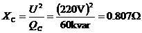 如果负载的输入功率因数与UPS的负载功率因数不相等,情形又会怎样呢?比如后面的负载是线性负载,即负载的输入功率因数=1,这种情况经常出现在UPS带假负载考机情况,如图4所示。在这里有一个很大的区别,负载中的电感部分没有了。这就造成了逆变器后面电容器C的无功功率再也不能向负载端提供的局面。由于60kvar的容抗XC是: