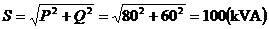 无形中将逆变器的造价增加了20%,但逆变器的驱动电路也比需相应地升级,那就不止20%了。全国所有的厂家都必须照此办理,这个影响面就大了!这样一来,80kW的输出功率是给出来了,可惜的是负载功率因数F就不是0.8了,因为陷入误区的制造商是不会将原来60kvar的无功功率作任何改变的,即仍然保留了60kvar的电容器,这样一来按着原来的对负载功率因数F的设计,就变成了: