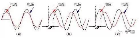 在电气领域的负载有三个基本品种:电阻、电容和电感。电阻是消耗功率的器件,电容和电感是储存功率的器件。日常所用的交流电在纯电阻负载上的电压电流是同相位的,即相位差q = 0°,如图1(a)所示;交流电在纯电容负载上的电压和电流关系是电流超前电压90°(q =90°),如图1(b)所示;交流电在纯电感负载上的电压和电流关系是电流滞后电压90°(q = -90°),如图1(c)所示。