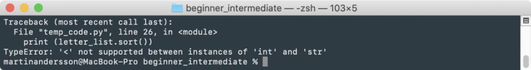 注意我们是怎么将字符串和整数混合在一起的,如果尝试对其排序,就会报错: print (my_list.sort())