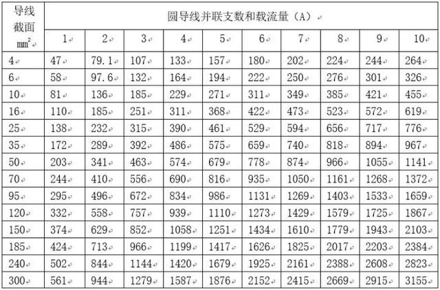 此表就是多芯电线的载流量与单根芯线载流量之间的关系。 来看《电工手册》中的实际表,此表中的数据并非裸导线,而是实际电线参数,如下:
