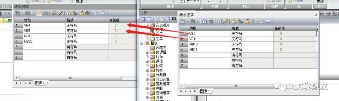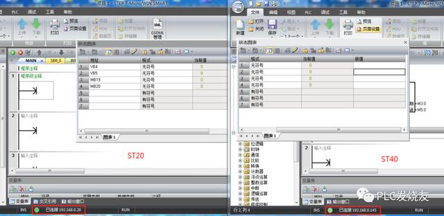 ST40:用状态图表监视VB0—VB1写地址(ST40)与监视VB4—VB5读地址(ST20)