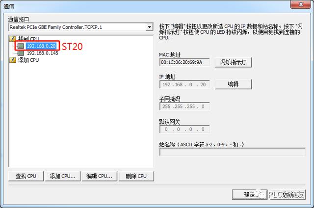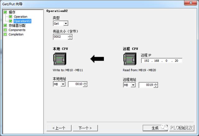 4. 远程CPU:远程IP:192.168.0.20这里是(ST20)对方PLC通信IP地址,远程地址:MB19—MB20两个字节。
