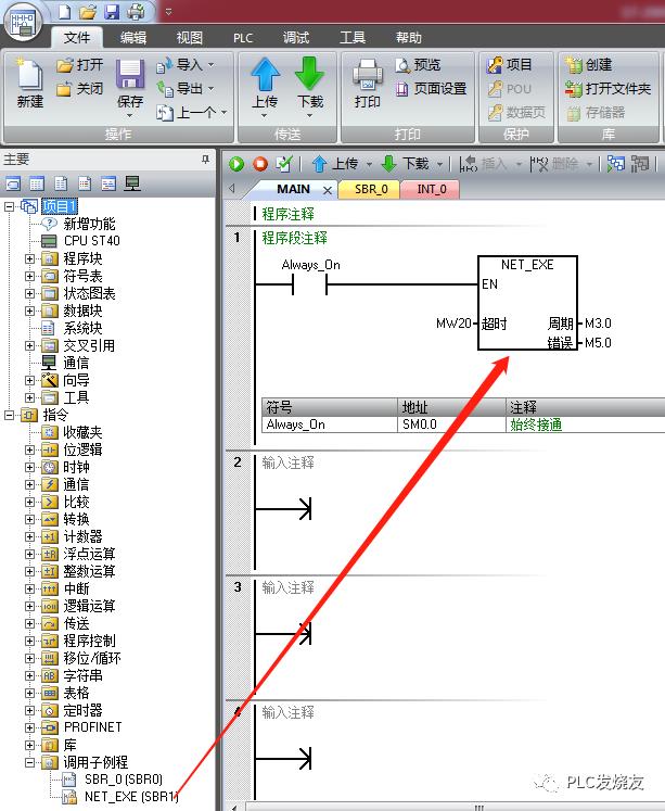 第八步:(在本地CPU ST40里调用生成的子程序NET_EXE并填写对应的引脚参数)
