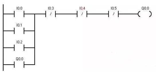 图3所示是一个多地控制电路梯形图。I0.0、I0.1、I0.2是多地启动按钮,I0.3、I0.4、I0.5是多地停止按钮。