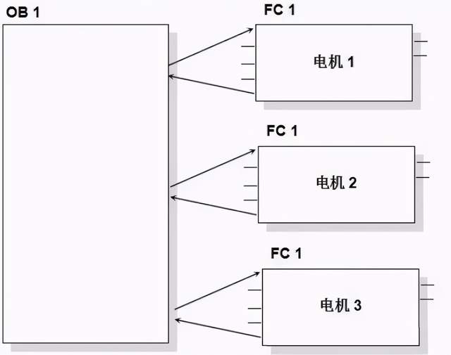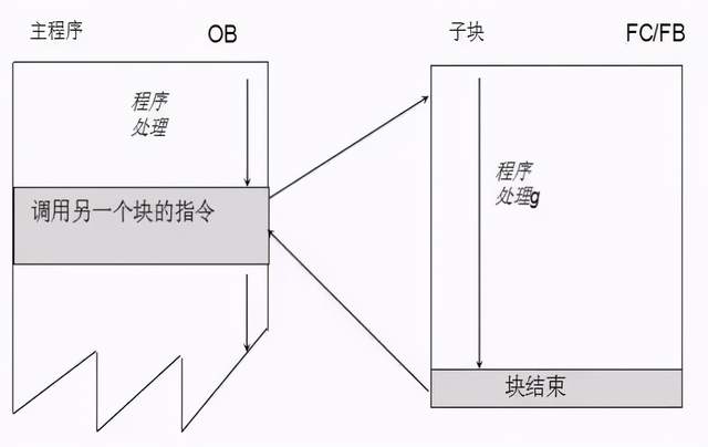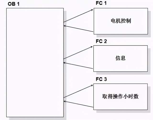 模块化编程中OB1起着主程序的作用,FC或FB控制着不同的过程任务,相当于主循环程序的子程序。模块化编程中被调用块不向调用块返回数据。