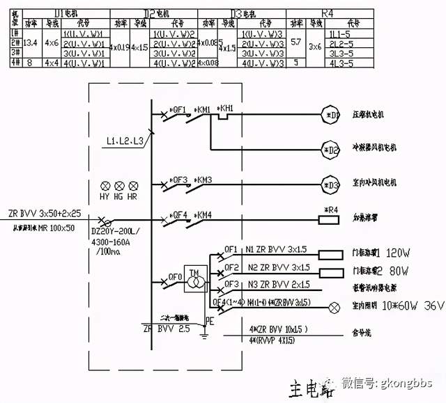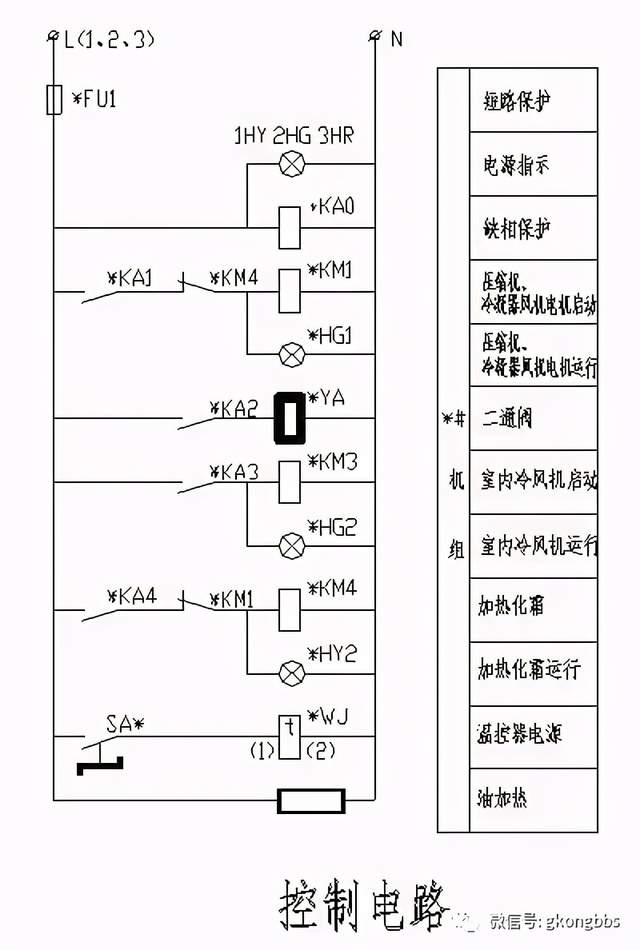 ■ 冷凝器风机和室内冷风机都是由4台小型风机组成,生产厂商已在整机上将电路连接好,无法加入过载保护。 ■ 照明变压器系成品,另箱安装,二次必须重复接地。 ■ 单位:功率—KW 未标注导线型号—BVV 导线截面—mm2 ■ *=1~4 2. 控制电路