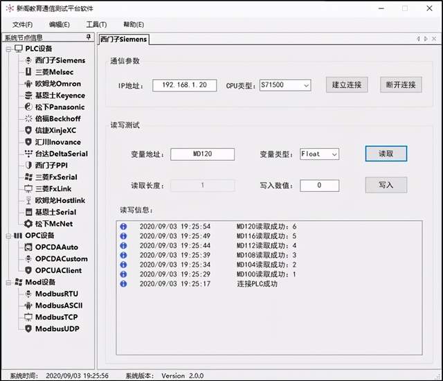 通过这样的一个通信测试,以后我们可以将一台电脑完全当做一台西门子PLC来使用,不仅可以仿真逻辑,还可以仿真通信。支持S7服务器、ModbusTCP服务器、TCP服务器、UDP服务器、OPCUA服务器,学习上位机通信必备的一大利器。