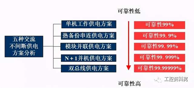 UPS供电方案介绍 集中供电方式: 优点:可以实现网络设备资源的等电位控制,减小传输误码率。 缺点:初期投资大,单机故障影响大。 分散供电方式: 优点:方案布置灵活,故障影响小。 缺点:如整个设备不能保持同地线,易引发干扰。