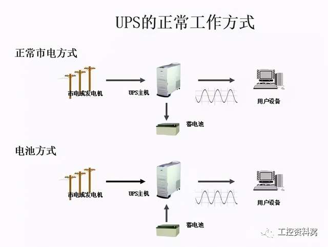 UPS,就是不间断电源。通常是弱电机房工程子系统之一,是将蓄电池与主机设备相连接,主要用于给设备提供稳定、不间断的电力供应。 当市电输入正常时,UPS 将市电稳压后供应给负载使用,此时的UPS就是一台交流式电稳压器,同时它还向机内电池充电;当市电中断(事故停电)时, UPS 立即将电池的直流电能,通过逆变器切换转换的方法向负载继续供应220V交流电,使负载维持正常工作并保护负载软、硬件不受损坏。 UPS 设备通常对电压过高或电压过低都能提供保护。下面我们一起来看下UPS的基础知识。 UPS的基本原理及主要技术参数 什么是UPS? 利用电池化学能作为后备能量,在市电断电等电网故障时,不间断地为用户设备提供(交流)电能的一种能量转换装置。