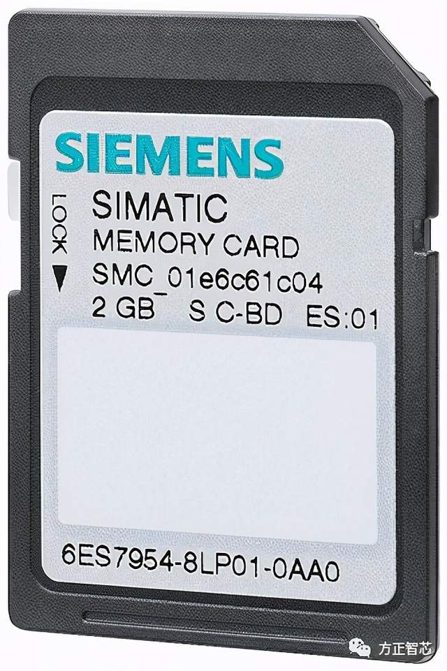 用户程序只能整体写入MC Flash卡中,不能单独写某个块。当PLC断电重启后,操作系统会自动从MC Flash卡中拷贝程序到到工作存储器(Work Memory)中。 注意,使用命令【Download User Program to Memory Card】会清空内置装载存储器的内容;如果用户再次使用【Download】命令下载程序块,有可能会造成内置装载存储器和MC Flash卡程序不一致的现象。 如果你的CPU使用的MC Flash卡,请使用【Download User Program to Memory Card】命令下载程序,以保证其一致性。 接下来我们介绍下用于西门子新型PLC S7-1200/1500的存储卡:SIMATIC Memory Card,简称【SMC卡】。 SMC卡其实是SD卡,只不过在其某些特定存储区嵌入了西门子的产品信息,因此变成了一张特殊的SD卡。 S7-1200系列CPU有内置的装载存储器,因此该卡非必需。当内置的装载存储器不够用时,可以使用SMC卡来扩展; S7-1500系列CPU没有内置的装载存储器,必须要使用SMC卡作为装载存储器;SMC卡外观如下图: