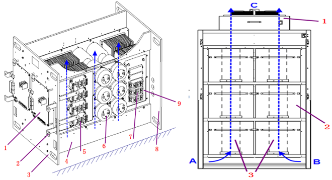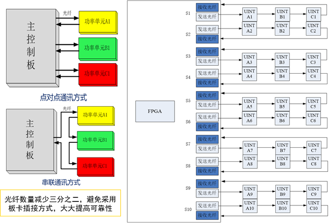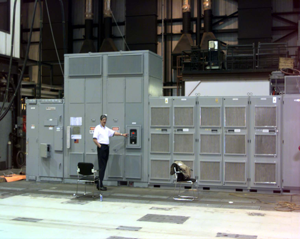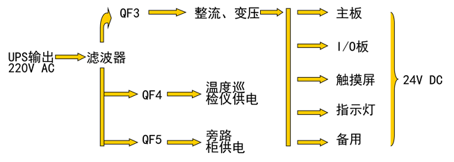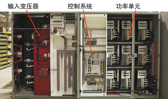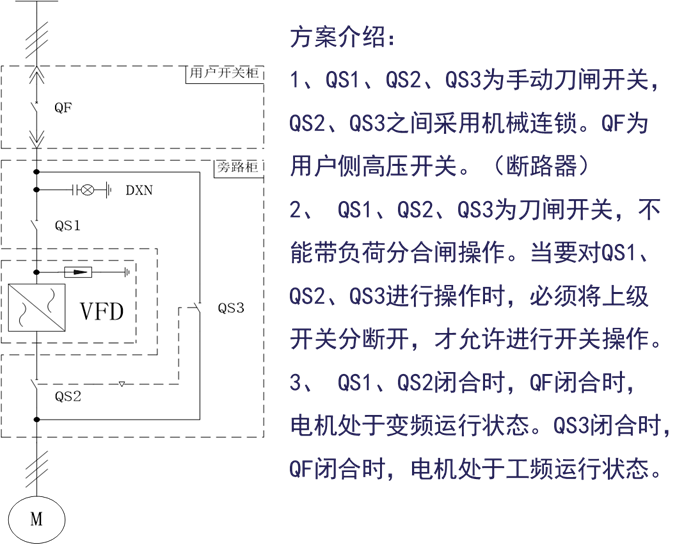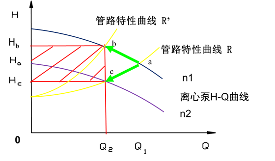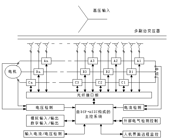 变频器是利用电力半导体器件的通断作用将工频电源变换为另一频率的电能控制装置。 可分为交—交变频器、交-直-交变频器。 交-交变频器可直接把交流电变成频率和电压都可变的交流电; 交—直—交变频器则是先把交流电经整流器先整流成直流电,再经过逆变器把直流电变成频率和电压都可变的交流电。 变频器的组成: 变频器是由主回路和控制回路两大部分组成的。主回路由整流器、滤波器和逆变器三个主要部分组成。控制回路则由单片机、驱动电路和光电隔离电路组成。 变频技术是应交流电机无级调速的需要而诞生的。随着电力电子器件【从SCR(晶闸管)发展到今天的IGBT(绝缘栅双极型晶体管)】、电力变换技术的不断发展和脉宽调制变压变频调速理论(PWM—VVVF)的成熟。 变频调速的原理: 三相异步电动机转速为:n=n0(1-s) 其中:n0=60f/p,为同步转速 因此n=60f(1-s)/p 改变电机的极对数(p); 改变电机的转差率(s); 改变电机供电频率(f),即变频调速。 根据三相异步电动机公式: E=4.44f1KNØ f1-电机频率。 N-每相绕组匝数; Ø-电机气隙磁通; K-与绕组有关的常数。 Ф=E/(4.44KNf1)=KФ(E/f1)≈KФ(U/f1) VVVF控制 变频调速的优点: 变频调速主要有如下一些优点: 1、调速范围宽,可使异步电动机0-100%无级调速(加减速时间可调); 4、对电机具有保护功能,降低电机的维修费用; 5、在合适条件下具有显著的节电效果。 基本接线: 变频器的寿命: 变频器虽为静止装置,但也有像滤波电容器、冷却风扇那样的消耗器件,如果对它们进行定期的维护、更新,可以有10年以上的寿命。 变频器调速节电原理: 变频器是节电产品,但变频器本身不节电,相反,它本身也耗电,它的作用是改变电机的转速; 变频器节电的效果完全取决于电机负载的工况条件-有调节转速节电的需要。 例如:离心泵的特性 减量操作(Q1-Q2): 出口阀门调节时泵工作点的变化: 减量操作(Q1-Q2): 调速调节时泵工作点的变化: 阀门、速度调节能耗比较: 式中:P-泵工况点的轴功率,kW H-工况点的扬程,m ρ-介质密度,kg/m3 η-工况点的泵效率,% 得出泵运行在b、c点的轴功率和损耗功率△P: △P=Pb-Pc≈kQ2(Hb-Hc)ρ/η 一般输出3KV~13.8KV电压的变频器称为高压变频器。 国外称为中压变频器,国内称为高压,主要是与低压变频器相对而言的。 常用高压变频器分类: 按输出电压方式: 高-低-高型:低压变频器,有降、升压过程按中间环节类型 电压源:中间直流环节为电容 按逆变器电路结构型式: 三电平(中心点钳位) GTO/SGCT电流源型逆变器 功率单元电压串联结构 某品牌高压变频器组成结构: 几种调速方式对比: 变频器的散热与旁通: 二次结构图: 控制电源: 一、外部电源→UPS 二、UPS→板件 风扇电源: 变压器→风扇 电压、电流检测: 变频器控制信号: 变频器输出: 外部信号输入 单元与主板通讯方式: 功率单元散热方式: 水平散热: 垂直散热: 垂直通风散热技术风道小,散热风机利用率高,散热效果好; 由于电解电容位于风道内,散热良好,寿命大大增加 变频器整机散热方式: 方式一:室外冷风—变频器--热风---风道引至室外 特点: 1)施工简单,维护量大(定期清洗滤网)。 2)费用低,散热效果较好。 3)运行稳定性依赖于当地环境,适用于环境较好,粉尘少的场合。 方式二:室外冷风—变频器--热风--室内-室外 优点:无额外的风道或空调成本。适合北方冬季使用。 缺点:散热受外界温度影响大,变频器很容易因过热而故障停机。 方式三:房间密闭室内空调制冷--室内冷风—变频器--热风--室内。 优点:由于室内外空气没有直接流通,容易保证室内环境清洁,空调冗余配置。 缺点:空调的可靠性会影响变频器的稳定运行,空调费用高,运行费用高。 方式四:室内冷风-变频器-热风-空水冷散热器-冷风-室内 1)降温效果较好,降低设备的运营成本,设备使用寿命长、故障率低、性能可靠。 变频器旁路方式: (1)一拖一手动刀闸旁路方案 (2)一拖一自动接触器旁路方案 (3)一拖二手动刀闸旁路方案 (4)一拖二自动旁路方案 同步投切(电机软启动) 自动与手动旁路比较: 变频器节能原理: 交流异步电机: F:电机输入电源频率 P:为异步电机极对数 N:为电动机拖动负载的转速 S:滑差(一般为:0-0.05) 对于风机、泵类平方转矩负载,电机的输出功率与电机转速的立方成正比。 风机水泵类负载一般称为平方转矩负载,及转矩与转速成平方关系;其功率等于转矩乘转速,即功率是与转速成三次方关系,这个也就是风机水泵类采用变频调速以后节能的基本原理。 专业术语: 平方转矩负载:在各种风机、水泵、油泵中,随叶轮的转动,空气或液体在一定的转速范围内所产生的阻力大致与转速n的2次方成正比。随着转速的减小,转矩按转速的2次方减小。这种负载所需要的功率与速度的3次方成正比。 恒转矩负载:负载转矩TL与转速n无关,任何转速下TL总保持恒定或基本不变。例如传送带、搅拌机、挤压机等摩擦类负载以及吊车、提升机等位能负载都属于恒转矩负载。 恒功率负载:机床主轴和轧机、造纸机、塑料薄膜生产中的卷取机、开卷机等要求的转矩大体与转速成反比。这就是所谓的恒功率负载。 变频与工频: 变频指的是电机,你说的变频泵应该是变频电机带动的泵。 变频也就是可调节频率,变频电机就是可以调节转速;工频电机就是我们日常用的频率50Hz,不可调速。 变频泵就是可以调节流量,工频泵就是流量