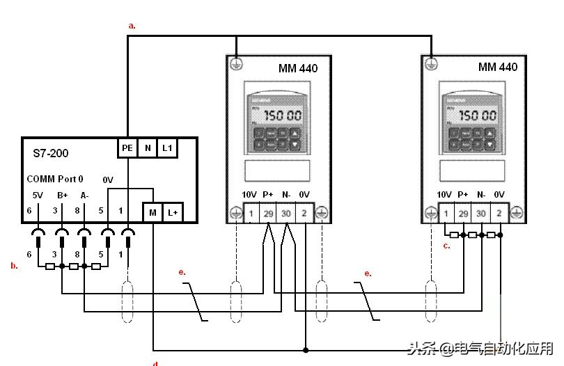 2、西门子MM440变频器和USS通讯相关的接线方式。