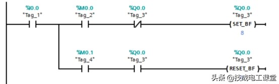 这两个指令其实就相当于S7-200/200 SMART PLC中的S和R指令了,只是指令名称不一样而已。