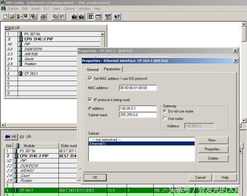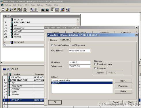 设置CP343-1、CP343-IT模块的参数,建立一个以太网,MPI、IP地址: