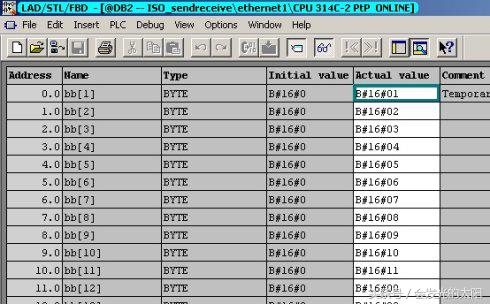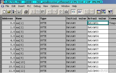 如下界面说明了将CPU314C-2DP 的DB1中的数据发送到CPU314C-2PTP 的DB2中的监视界面: