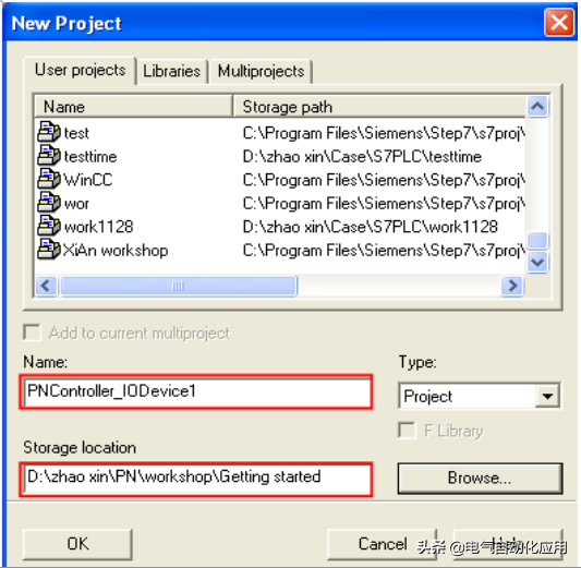 4.2 新新建建一一个个项项目目 点击工具栏中的 按钮,弹出Newproject(新建项目)对话框。在Name: 栏中写入要新建的工程名,PNController_IODevice1。