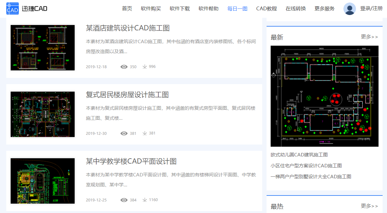 二、CAD资源在哪里找?1、CAD练习图库 如果还有小伙伴不懂得如何寻找资源的,小编推荐你到迅捷CAD中的“每日一图”找一找,海量CAD图库资源提供参考练习,以便于大家绘制出更精准新颖的图纸内容。