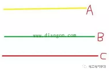对于单相交流电,只有一条火线一条零,我们平常接设备线的时候比如接灯,接插座,因为交流电不分正负极,所以接线的时候可以不按顺序接,也就是火线接在设备的零线上,零线接在设备的火线上也能正常使用。那么对于三相交流电是否也可以这样不按顺序接线的,答案是肯定是不可以,要是可以我也不用写这个了。 三相交流电是有三条火线的,所以总要区分开来,三条火线分别叫A相,B相,C相。但三条都是火线怎么知道那条是A相或B相呢?为了区分这个所以用三个颜色分别代表A,B,C相。黄色代表A相,绿色代表B相,红色代表C相。这三个颜色的顺序作为电工必须记住的,就像要记住单相交流电火线为红色一样,而三相电你要记位三个颜色,其实这三个颜色的顺序是很容易记的,(黄绿红)一起念有没有特别像一个明星的名字王立宏。反正我是这样记的,从来没有搞错过,当然你不喜欢的话你也可以用自己的方法去记。
