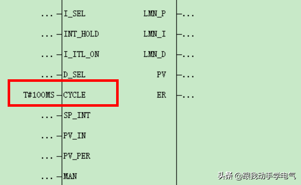 一、为什么要在OB35中调用FB41 1、PID(比例/积分/微分)控制器会测量两次调用之间的时间间隔并评估监视采样时间的结果。每次进行模式切换时以及初始启动期间都会生成采样时间的平均值。该值用作监视功能的参考并用于计算。监视包括两次调用之间的当前测量时间和定义的控制器采样时间的平均值。从上面的定义可以知道采样周期就是一个很重要的因素,也会使计算的结果更接近理论目标。这是简单从定义的角度来分析。 2、OB35时间中断组织块,可以设定固定的执行周期,比如说100MS(也是默认设置),可以将FB41的采样周期与OB35的执行周期设置一致。因为在数字化的PID采样周期是要求等时间间隔的,因此,放到OB35中执行。 二、PID控制功能块管脚要知道的一些事情(这里以FB41为例) 1、采样周期与OB35循环中断时间设置一致 OB35的中断时间的设置方法:在硬件组态中选择CPU属性,在循环中断中设置OB35的循环中断时间:如下图所示: