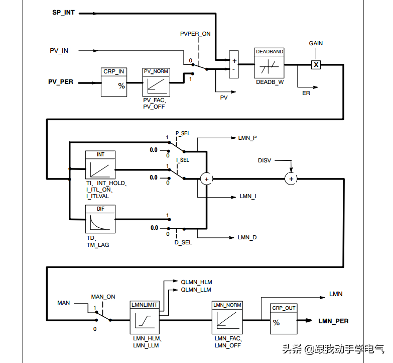 3、PID控制中常见的一些参数设置 首先看下手册中的框图: