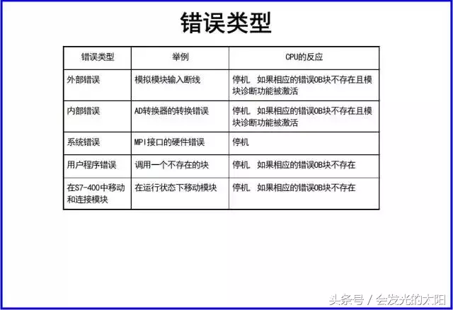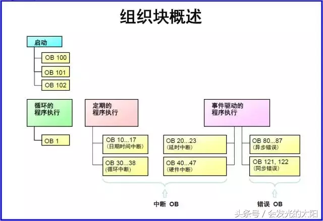 (5)OB80 时间错误组织块,包括:超出周期时间、执行OB时出现确认错误、提前了时间而使OB的启动时间被跳过、在CiR后恢复RUN模式。