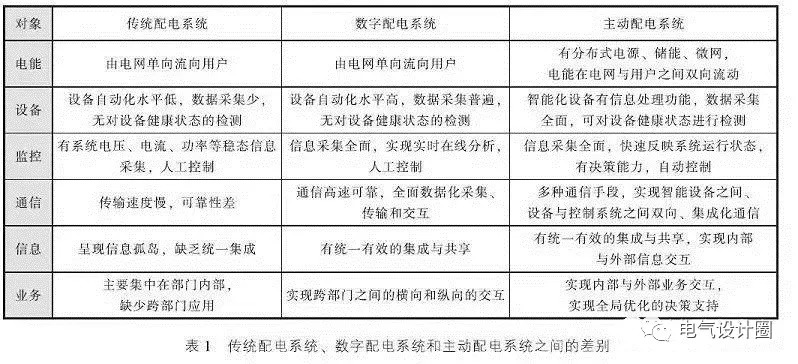 表1给出了主动配电系统与传统配电系统和数字配电系统之间的差别。