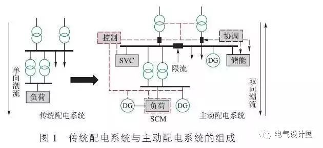 图1给出了传统配电系统与主动配电系统在系统组成上的差别。