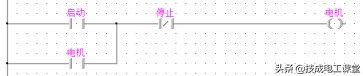 当然,和子程序不同的是,这个自定义的功能块,其中的一些触点、线圈等只是用标签命名,如图27-3中的“启动”、“电机”等就是用文字命名的标签。